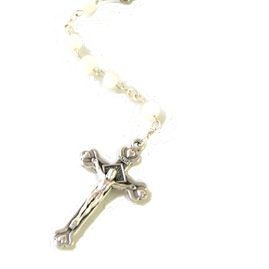 White projects purity, cleanliness, and neutrality. The color white aids mental clarity, evokes purification of thoughts or actions, and enables fresh beginnings. These white iridescent beads are a dainty 6mm in size and made of natural Holy Land Mother of Pearl. The silver crucifix shimmers with …